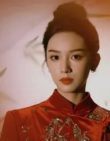 周也轻抚红色纱裙,姿态优雅如古典画卷,眼中闪烁着对新年的无限憧憬